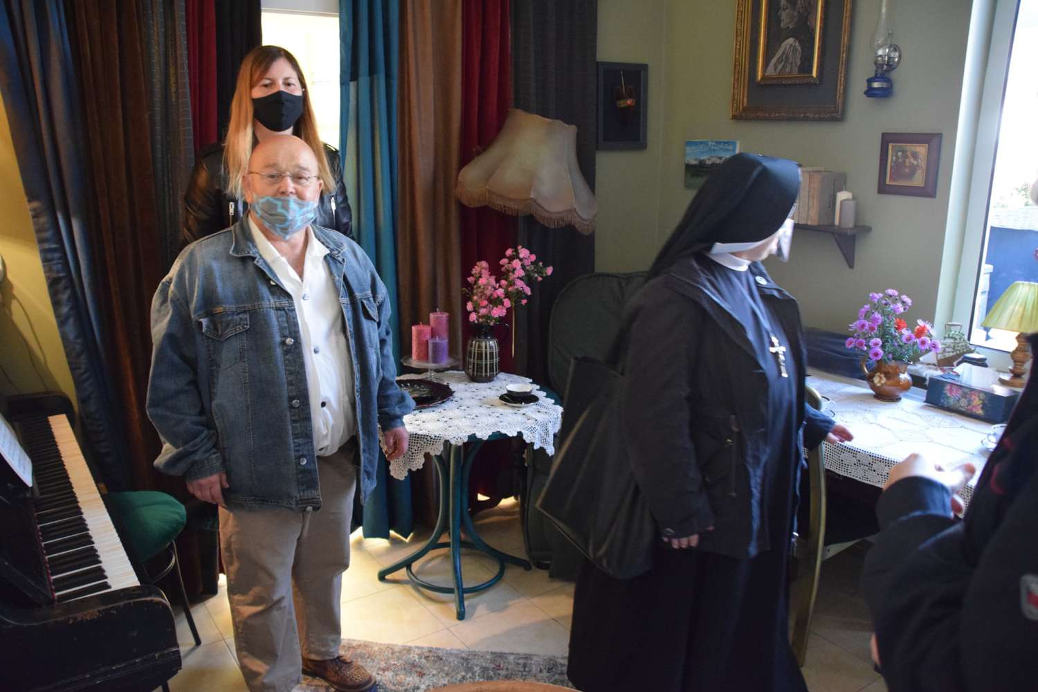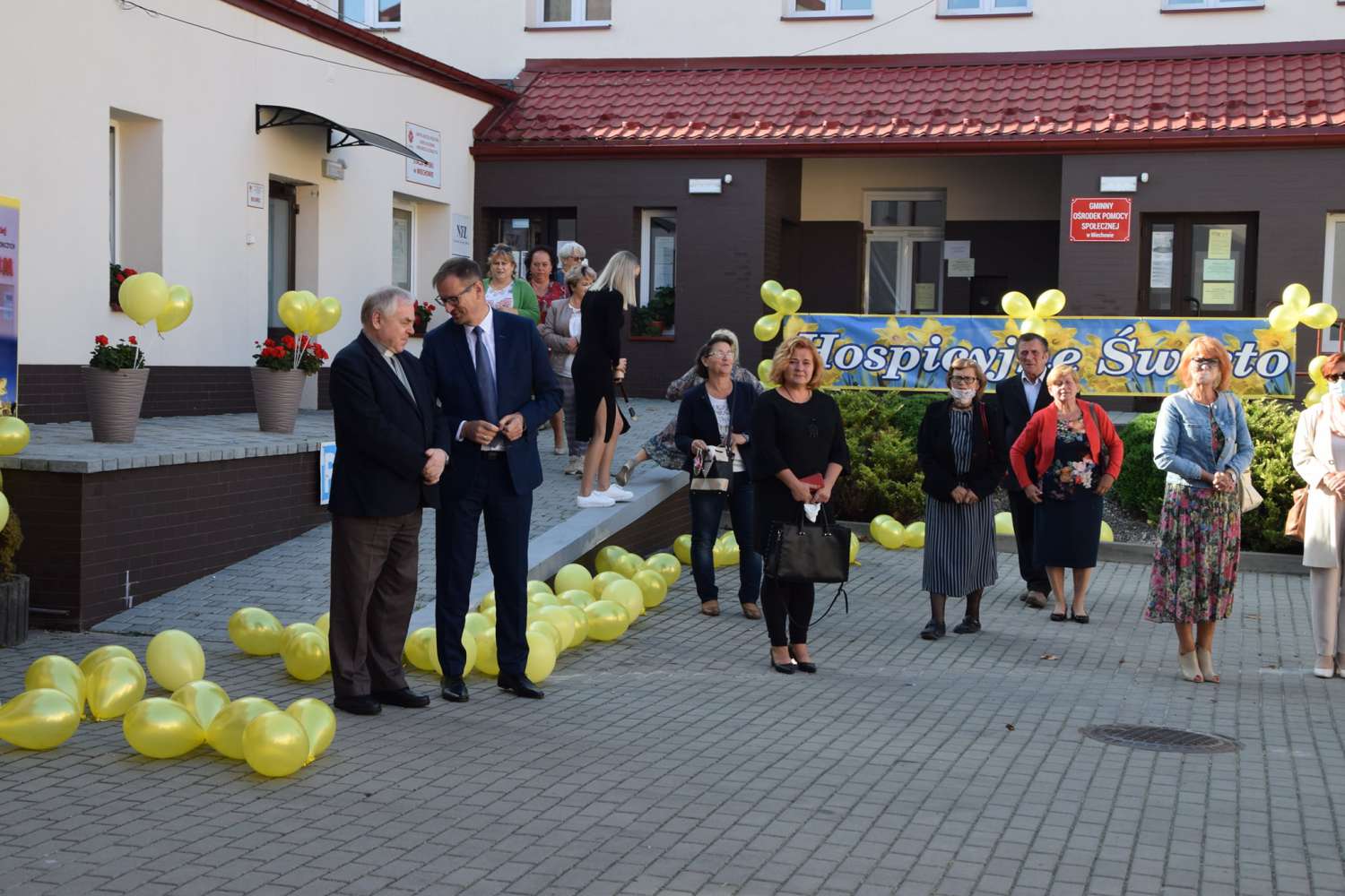 Po wsadzeniu żonkili nastąpiło uroczyste przecięcie wstęgi i otwarcie biura wolontariatu oraz hospicyjnej kawiarenki „Dwa Serca”. Dla chorych bardzo cenne są spotkania, ludzie i to wszystko, co odróżnia jeden dzień od drugiego i temu mają służyć te miejsca. Otwarcia dokonali ks. dyrektor Stanisław Słowik, s. prowincjalna Kamila Laskowska oraz nasza wolontariuszka Joanna Filipek.